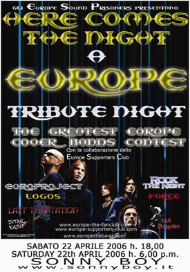 aprile 2006 IAN HAUGLAND OSPITE D’ONORE DELLA EUROPE TRIBUTE NIGHT Gli Europe Sound Prisoners (Novella, Paolo, Michele e Silvia), con la collaborazione di Annah e Laura Costa dello Europe Supporters